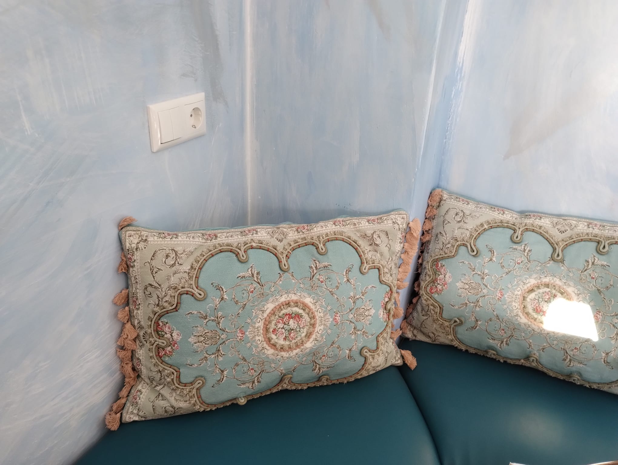 - Nachttischlampen und Steckdose am Bett