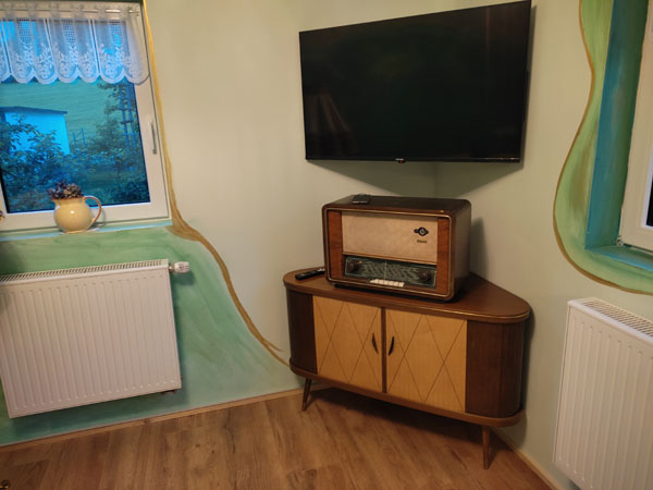 - Musik macht ein Röhrenradio, an dem Du auch Dein Handy über die Kopfhörerbuchse anschliessen kannst.